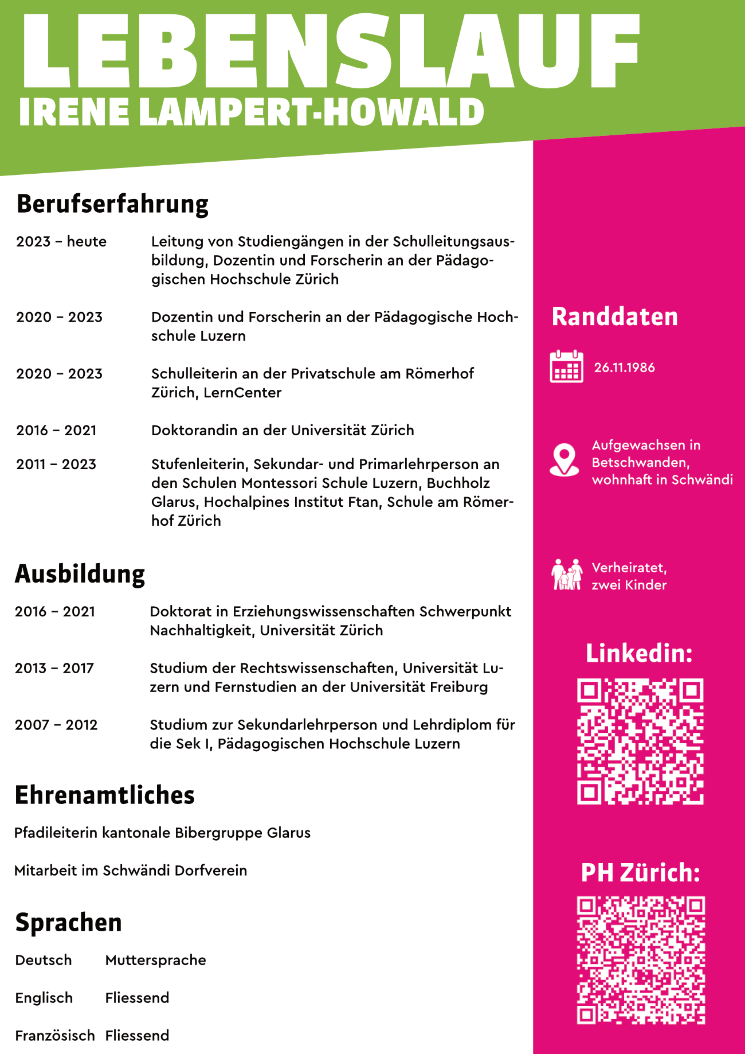 Irene Lampert-Howald besitzt einen vielseitigen Leistungsausweis. Ihr juristischer Hintergrund verleiht ihr zudem das nötige Rüstzeug für das Amt als Oberrichterin.